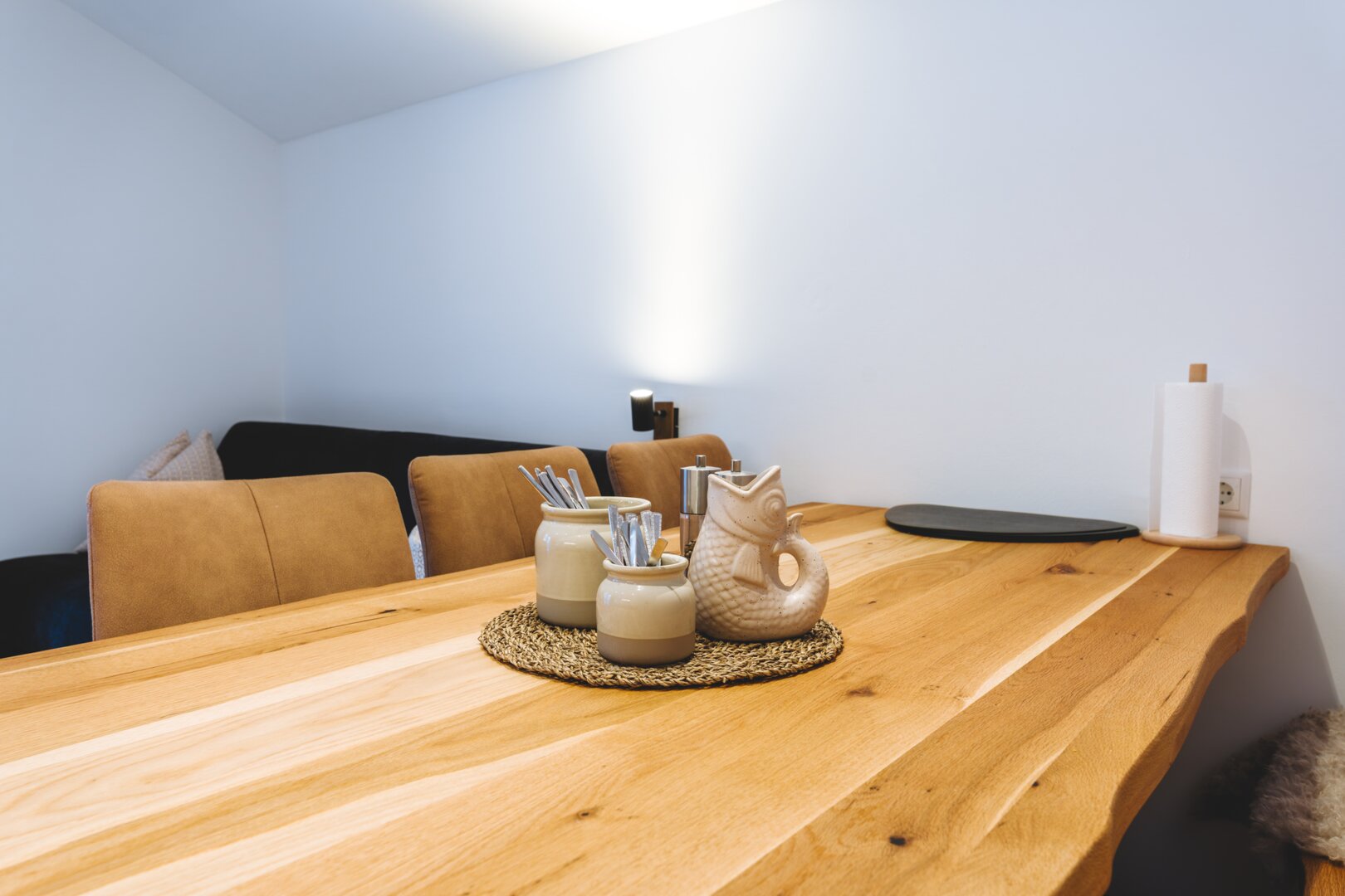 Die moderne, voll ausgestattete Küche lädt zu gemeinsamen Kochabenden ein. Zwei gemütliche Schlafzimmer mit Doppelbetten sorgen für erholsame Nächte, während eine komfortable Schlafcouch zusätzliche flexible Schlafmöglichkeiten bietet.
